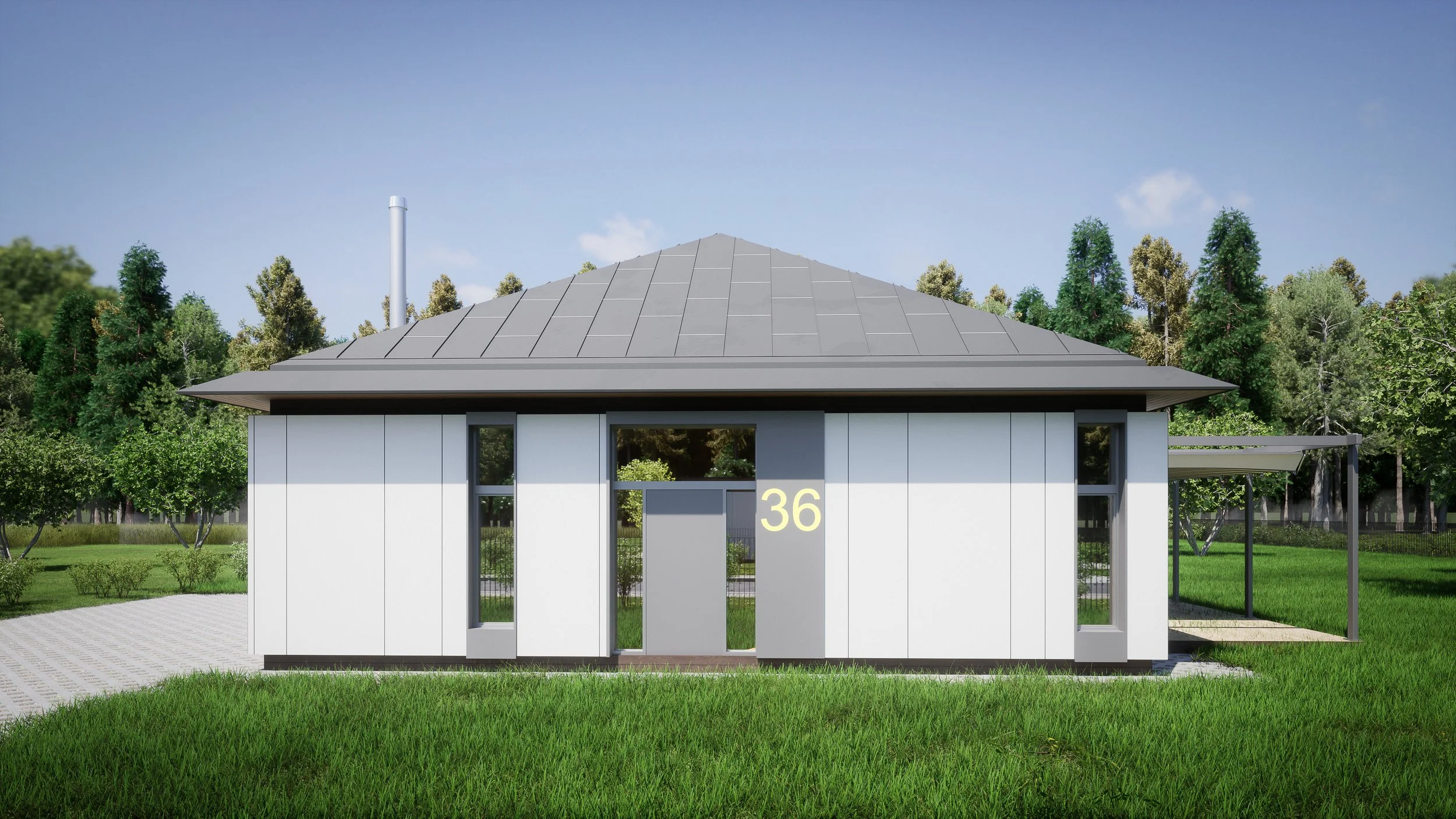 This project was developed as a competition-based proposal for the rapid renovation of rural houses in the Kyiv region following the russian occupation. The concept was based on three layout types with total areas of 120, 90 and 70 square meters, and for each layout, three volumetric solutions were proposed: one with a unified roof structure, and a more traditional option for rural areas — featuring either a gable or a hipped roof.